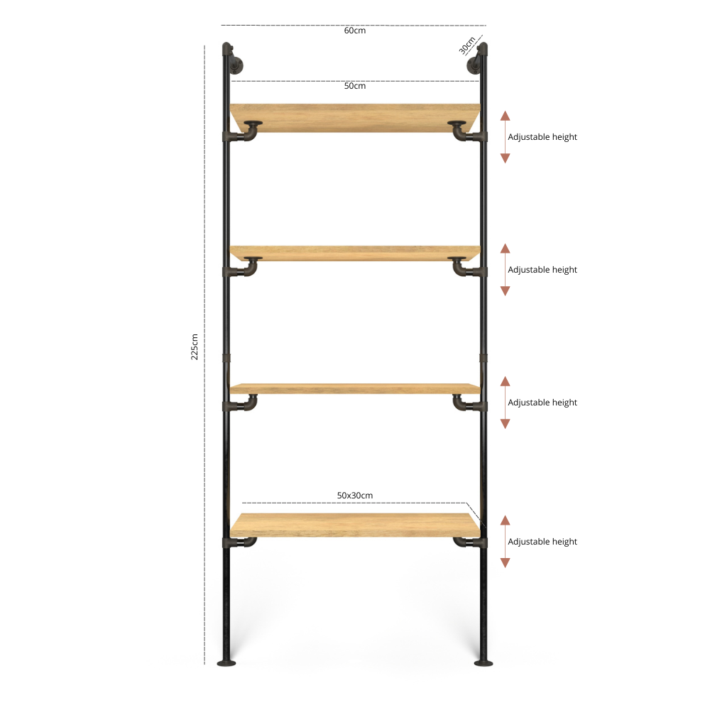 Stabile Materialien: Die vier Regale bestehen aus hochwertigem Holz (in heller oder dunkler Kiefer sowie Furniereiche – klassisch oder geräuchert), sodass Sie lange Freude an Ihrer Montage haben.