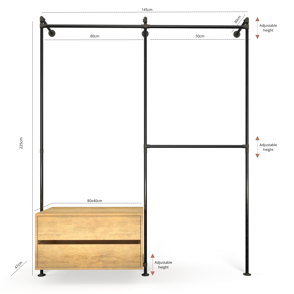 Vielseitige Kombination: Wählen Sie zwischen 1 Stange + 1 Kommode oder 2 Stangen für maximalen Stauraum und individuell abgestimmte Lösungen.