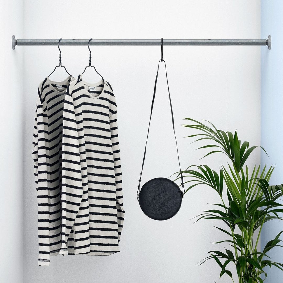 Unsere Logan Kleiderstange überzeugt durch robustes Design und höchste Präzision. Wir schneiden die Kleiderstange exakt nach Ihren Maßen zu, sodass sie perfekt in Ihre Nische passt – ob im begehbaren Kleiderschrank, im Flur oder sogar als stilvolle Gardinenstange im industriellen Look.