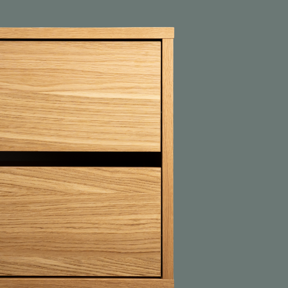 Stil und Nachhaltigkeit: Die Elemente aus FSC-zertifizierter Eiche (erhältlich in klassischem oder geräuchertem Furnier) garantieren nicht nur ein warmes, einladendes Design, sondern auch eine nachhaltige Produktion.
