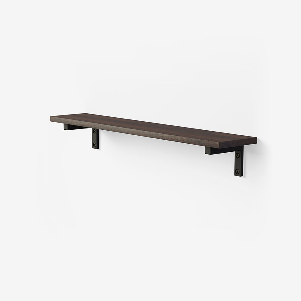 Eichenholzregalboden kombiniert mit pulverlackierten Eisenhalterungen