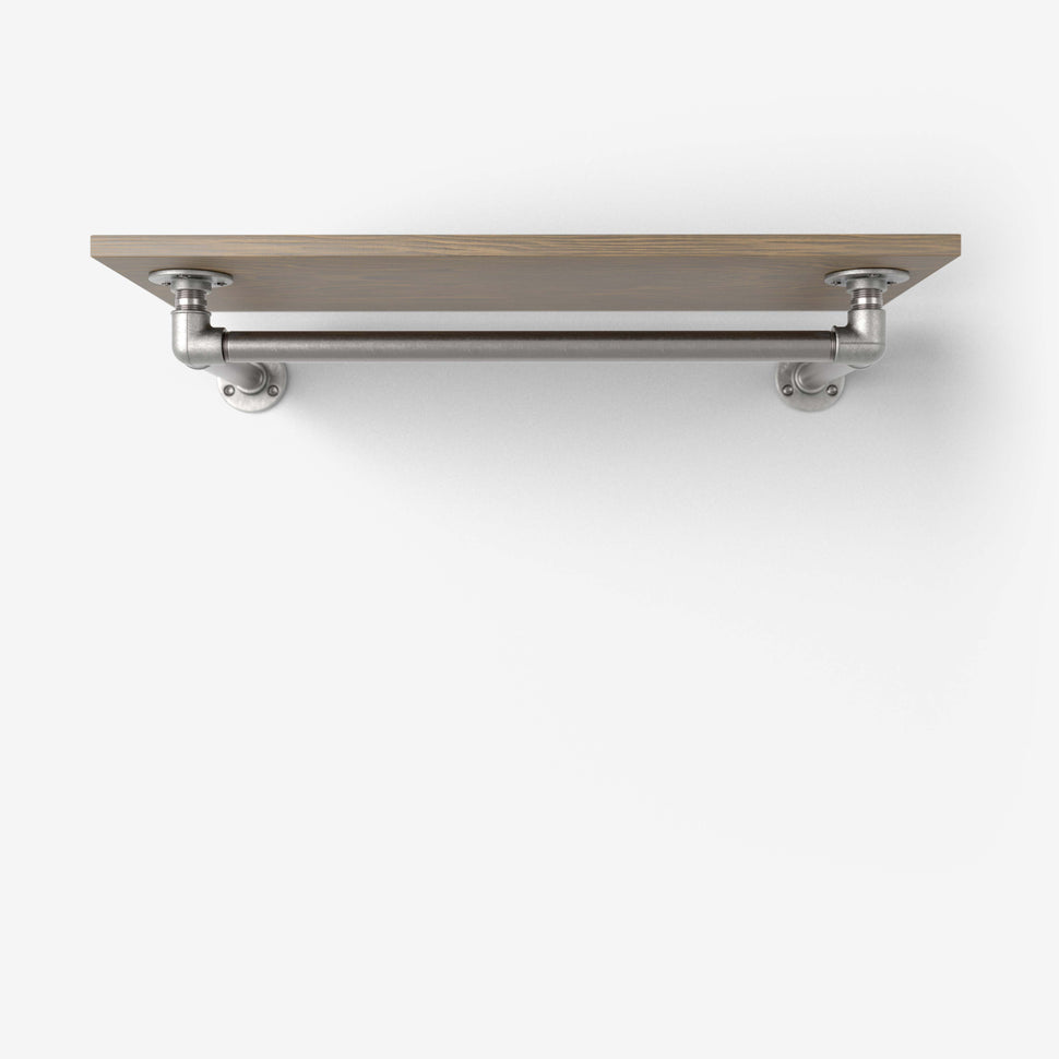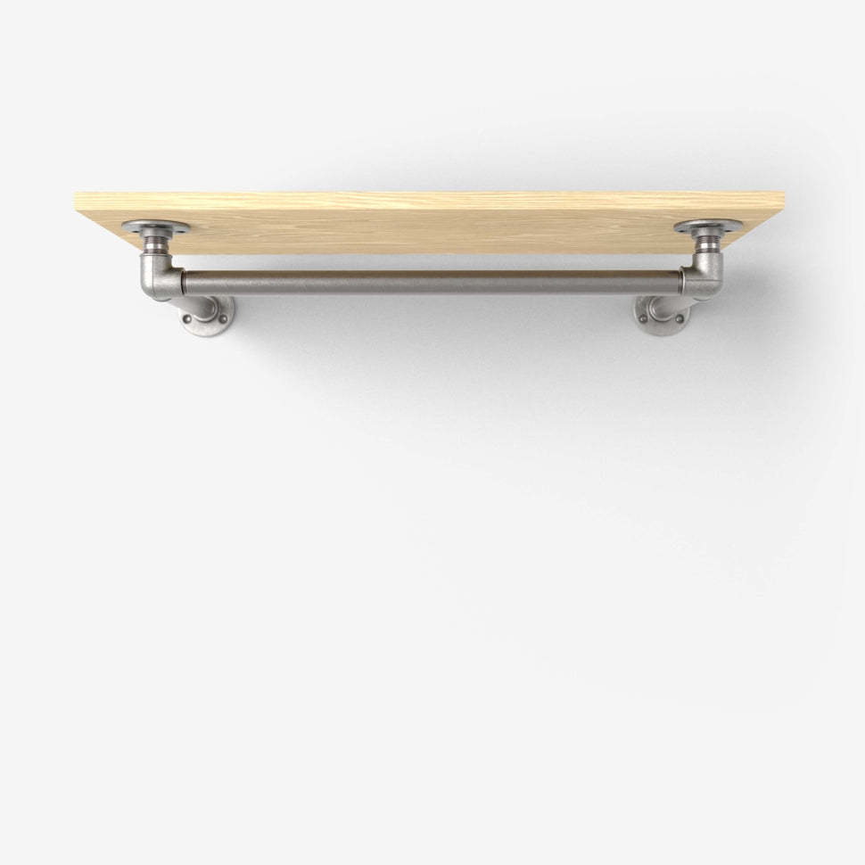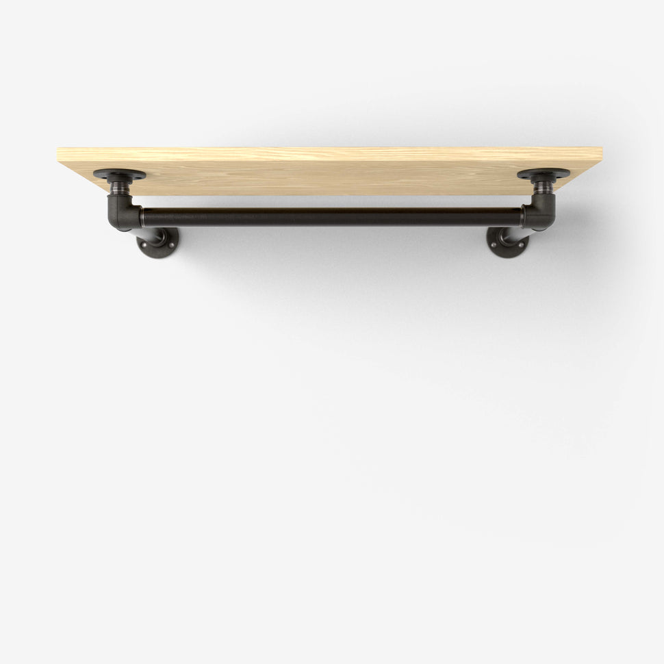 Damit die Kleiderstange unter das Regalbrett passt, ist die Querstange selbst 15cm kürzer als das Regalbrett.