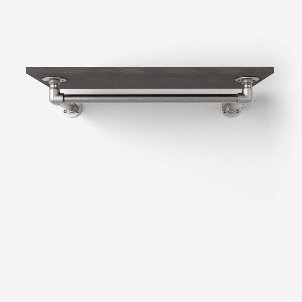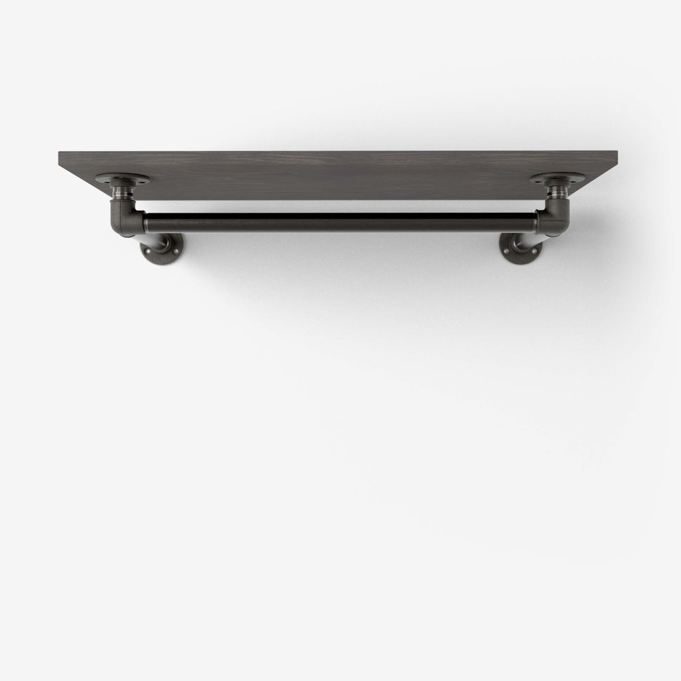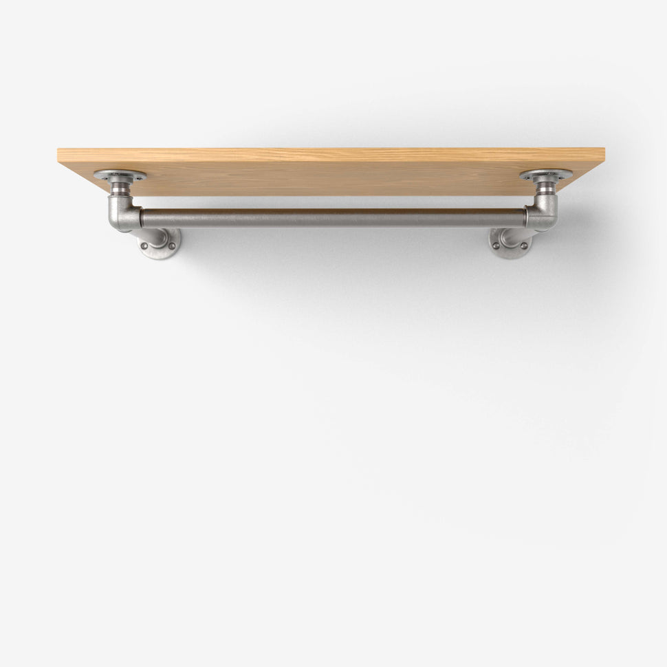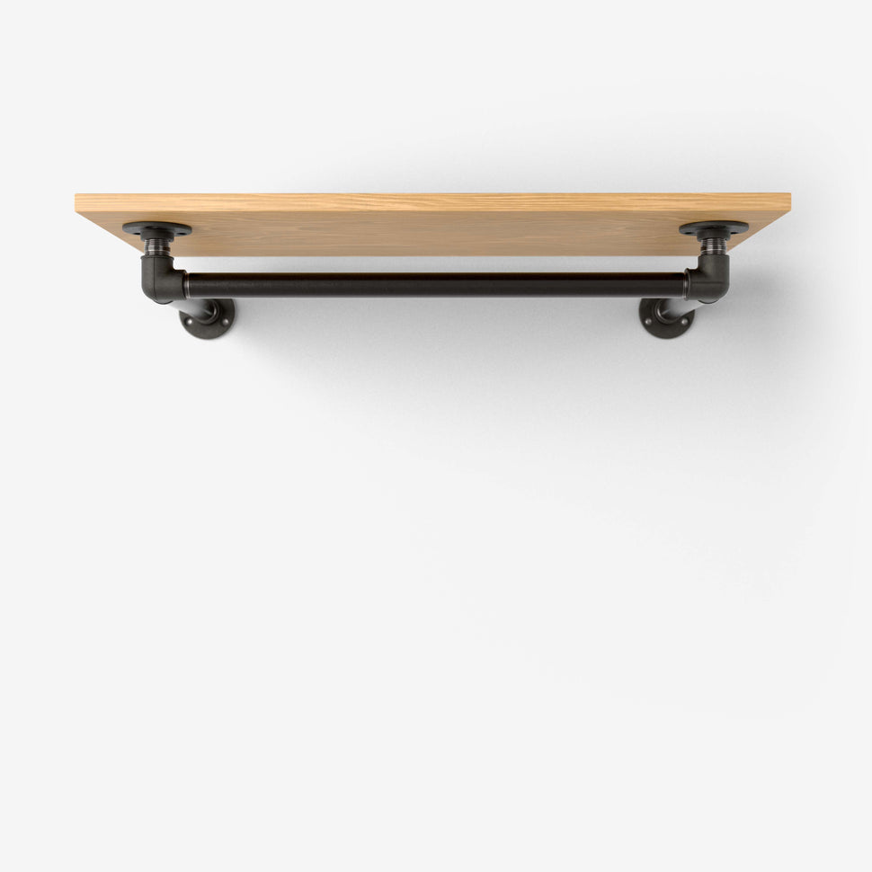 Damit die Kleiderstange unter das Regalbrett passt, ist die Querstange selbst 15cm kürzer als das Regalbrett.