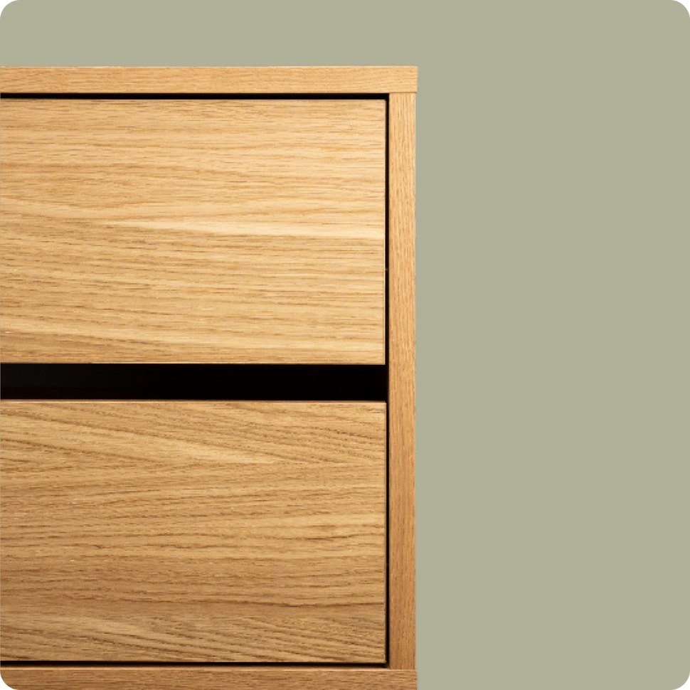 Praktisches Design: Die integrierte Holzkommode verfügt über 2 Soft Close-Schubladen, die nicht nur leise schließen, sondern auch zusätzliche Ordnung in Ihre Garderobe bringen.