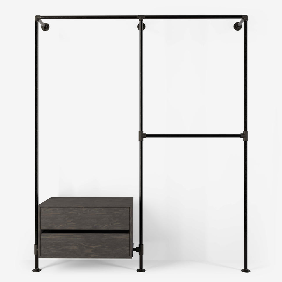 Haben Sie genug von unübersichtlichen Aufbewahrungssystemen? Mit unserer The Walk-In mit Kommode - (1 Stange + 1 Kommode / 2 Stangen) bieten wir Ihnen eine maßgeschneiderte Lösung, die Stil und Funktionalität perfekt vereint. Wir bei RackBuddy sind Ihr Partner, wenn es darum geht, jeden Winkel Ihres Raumes optimal zu nutzen – egal, ob niedrige Decken, schräge Wände oder unkonventionelle Raumformen.