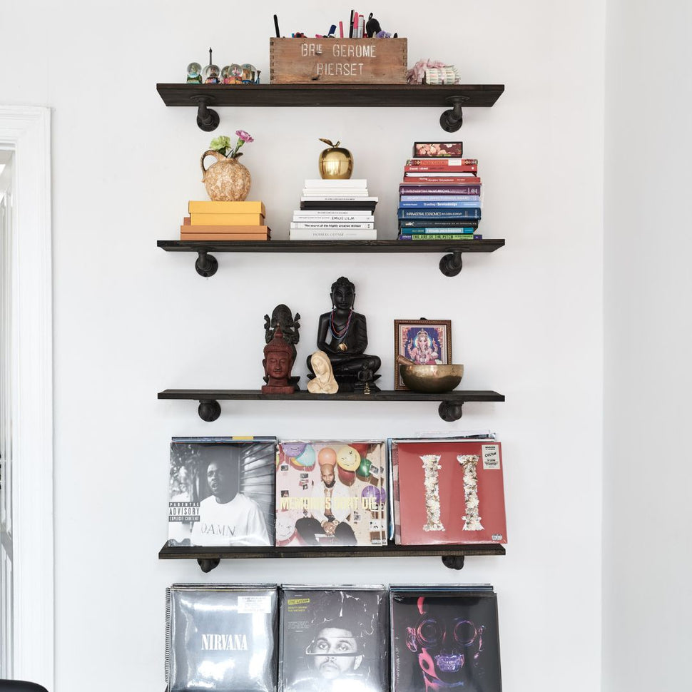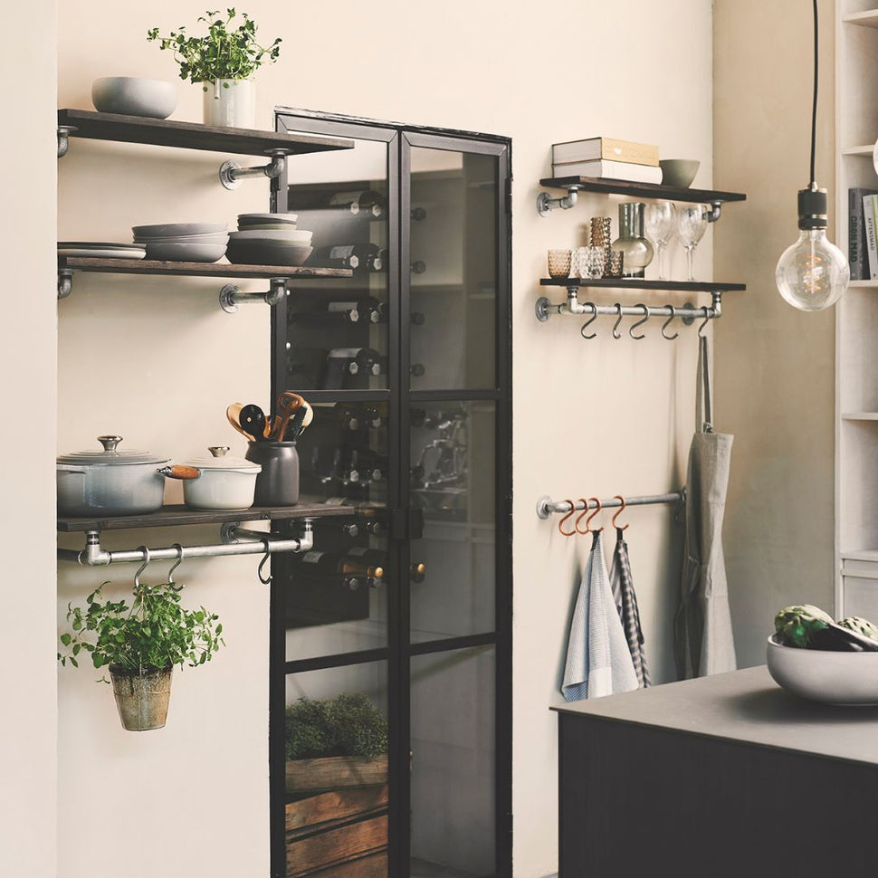 Unser John Regal kombiniert robuste Materialien mit skandinavisch inspiriertem Design. Die dunklen und silbernen Wasserrohr-Beschläge verleihen dem Regal einen urbanen, industriellen Touch, während die hochwertigen Holzoberflächen wie helle oder dunkle Kiefer sowie klassische Varianten aus Eiche oder Räuchereiche mit Echtholzfurnier dem Produkt einen warmen, zeitlosen Charakter verleihen.