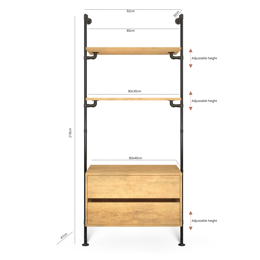 Gesamttiefe des Racks inkl. Kommode: 50cm
